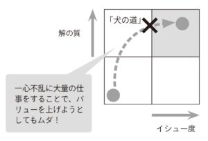 そこに行き着くまでの歩み方として解の質をあげてイシュー度をあげることは犬の道であると作者はいう。